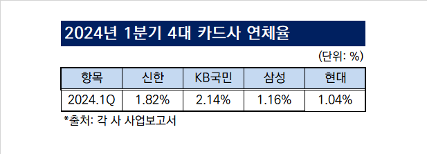 신한카드는 연체율 관리를 위해 차주의 자격기준을 강화하고 있다는 입장이다. 신한카드 관계자는 "금융상품 등 리스크 상품 중심으로 모니터링을 강화하고 있다"며 "다중채무자 등 고위험 차주에 대해서는 차주의 상환능력 및 신용도를 고려해 자격기준을 강화해 운영하고 있다"고 했다.