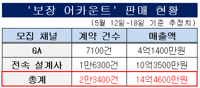 보험업계에 따르면 삼성화재가 전속 설계사와 법인보험대리점(GA)을 통해 판매한 보장 어카운트 건수 추정치는 이달 18일 기준 2만3400건가량이다. 매출액으론 총 14억4600만원 규모다